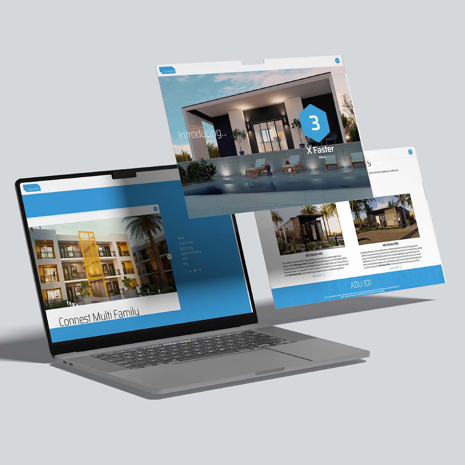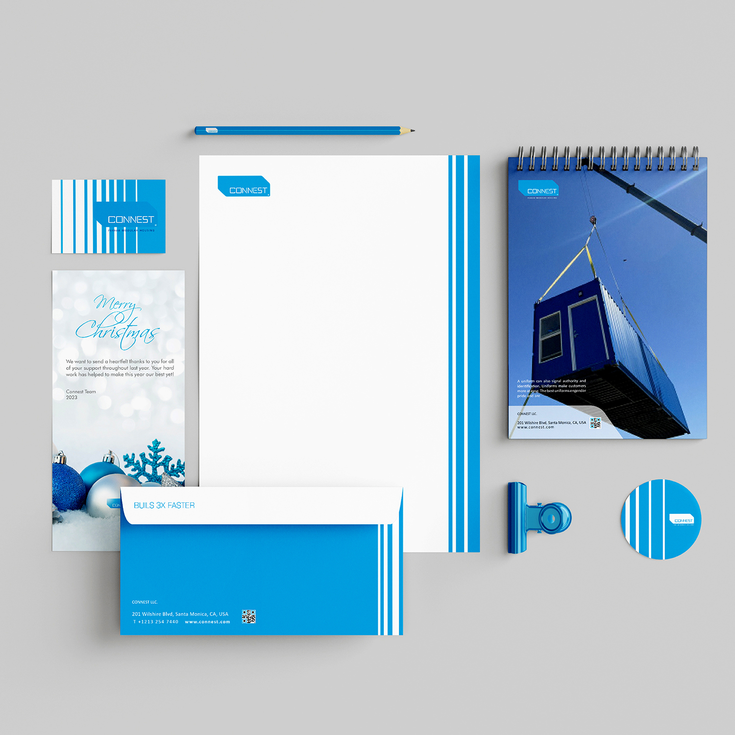 Connest is a modular housing manufacturer focused on efficient, container-based construction. Our branding approach takes inspiration directly from the geometry of shipping containers, using their structured form to shape the logo and visual identity. The blue color palette is chosen to communicate calmness, reliability, and a sense of comfort in modern living spaces. Beyond identity design, we support Connest in procurement systemization and digital organization to streamline operations. We also develop and manage marketing channels including LinkedIn and Instagram, along with presentations, videos, photography, website design, and marketing materials. The result is a cohesive brand ecosystem that connects industrial precision with human-centered living.